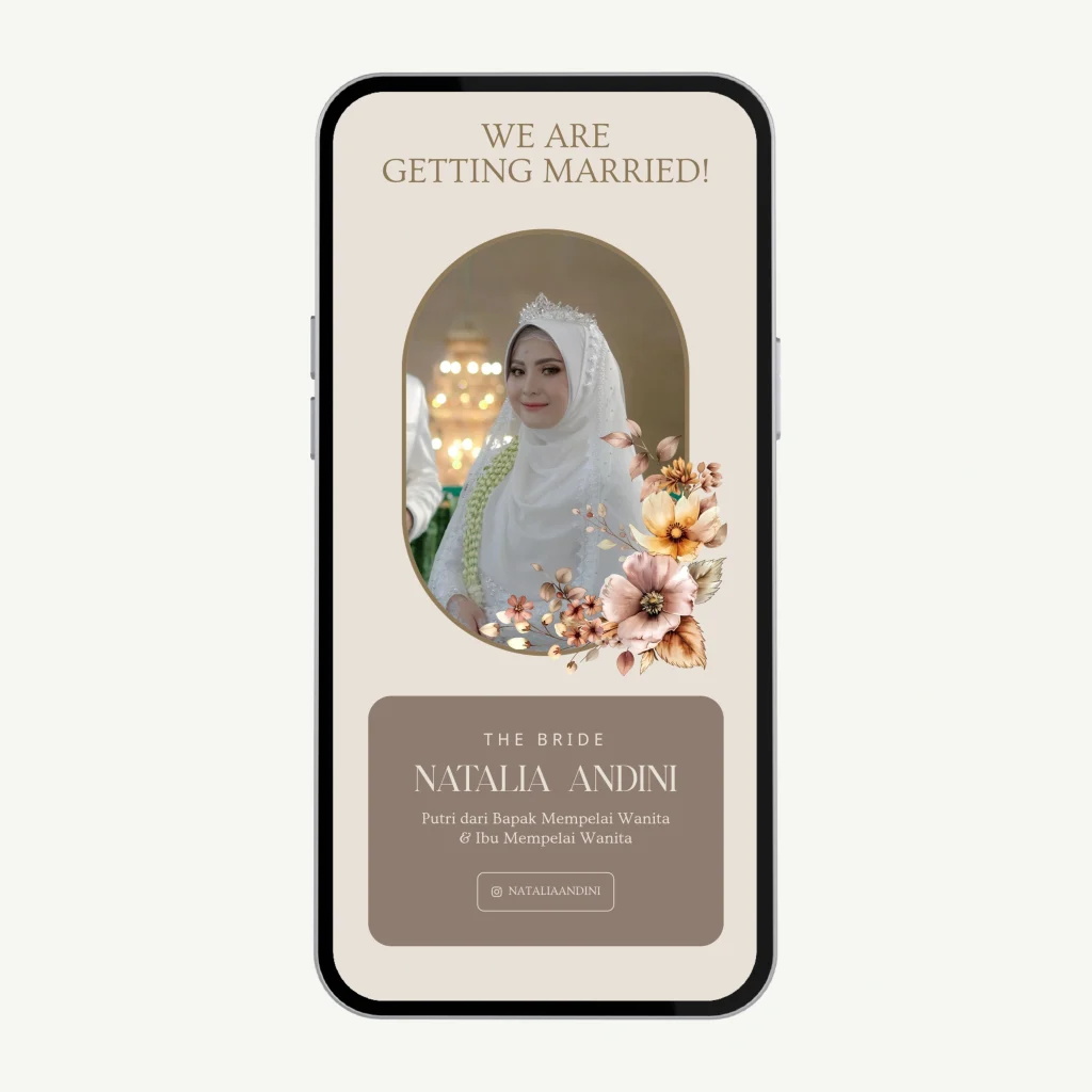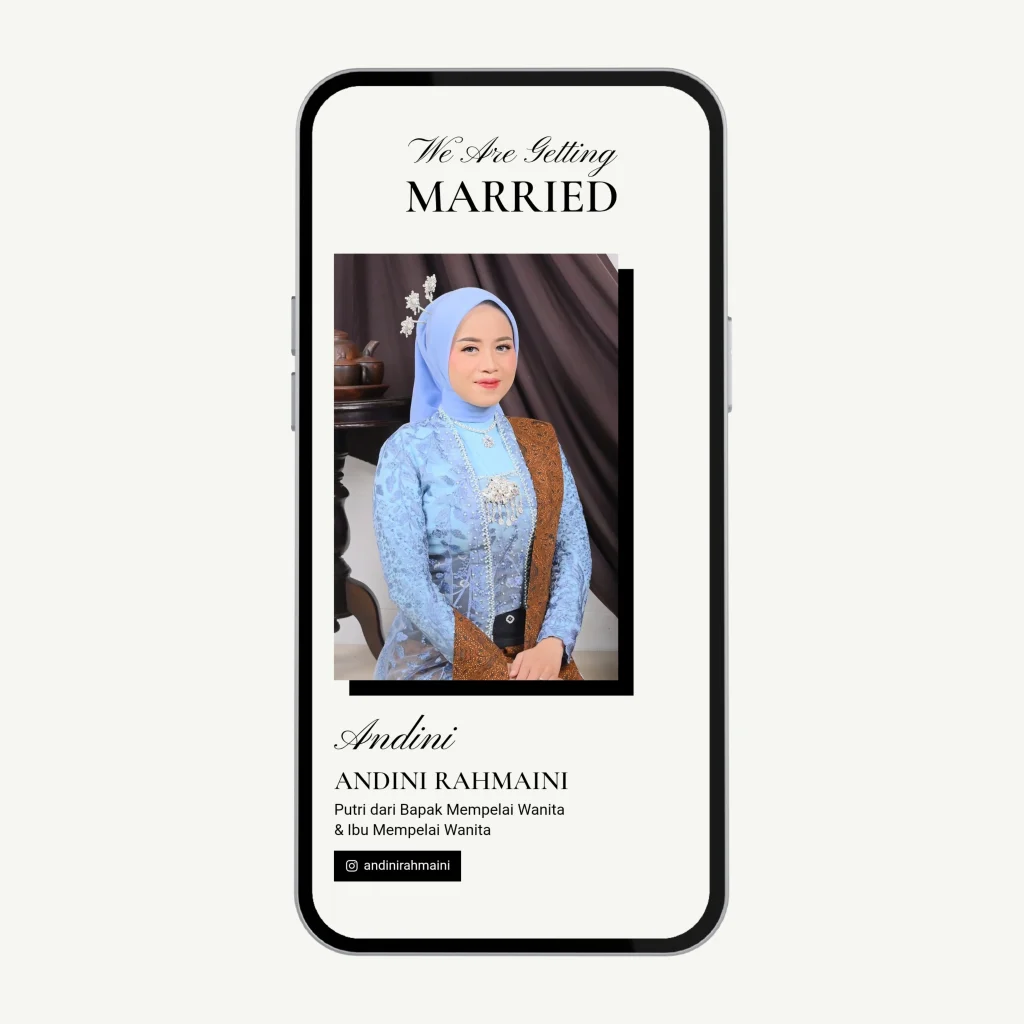 Mulai dari memilih konsep, warna, hingga detail visual — semuanya saya sesuaikan agar menghadirkan undangan yang mewakili kisah cinta kalian. Buat kalian yang ingin undangan dengan sentuhan pribadi dan makna yang lebih dalam, let’s craft your story together.